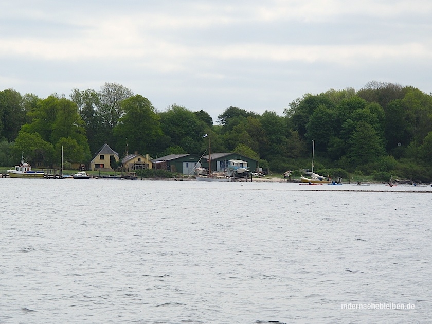 Angeblich setzt stündlich eine Fähre auf die Große Ochseninsel über. (Die Kleine Ochseninsel kann man nicht besuchen. Sie ist im Besitz der Dänischen Lehrervereinigung und so schön verwildert, dass ich sie viel lieber erkunden würde als die Große. Aber man kann eben nicht alles haben.)