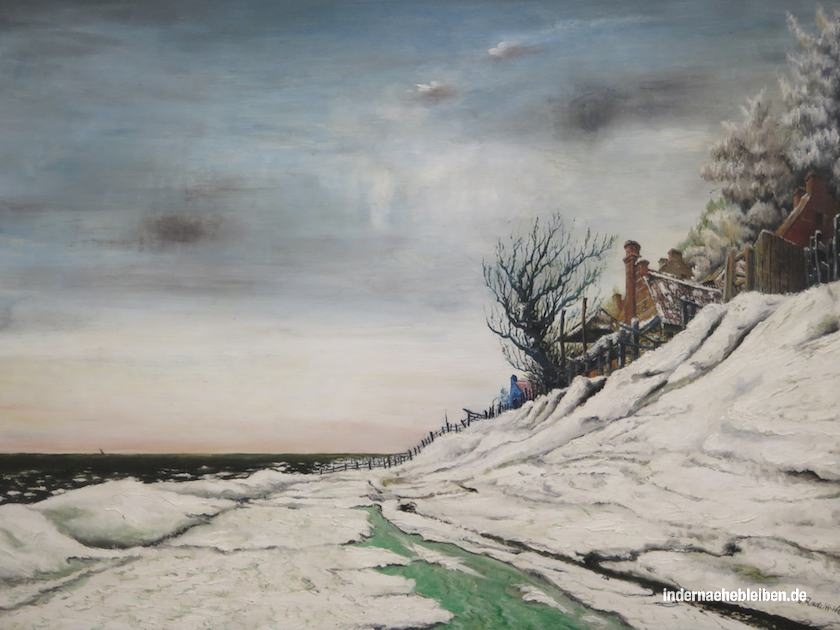 Ist mein Blickwinkel eingeschränkt?, frage ich mich, als mir auffällt, dass ich mich vor allem auf das konzentriere, was ich eh schon in- und auswendig kenne. Ich spaziere von einer norddeutschen Landschaft zur anderen. Von der Heide ins Alstertal, an Elbstrände und über Holsteiner Wiesen bis an die Ostsee. Befinde ich mich also in einer Art musealer Filterblase? Und sollte Kunst den Blick nicht eher weiten?