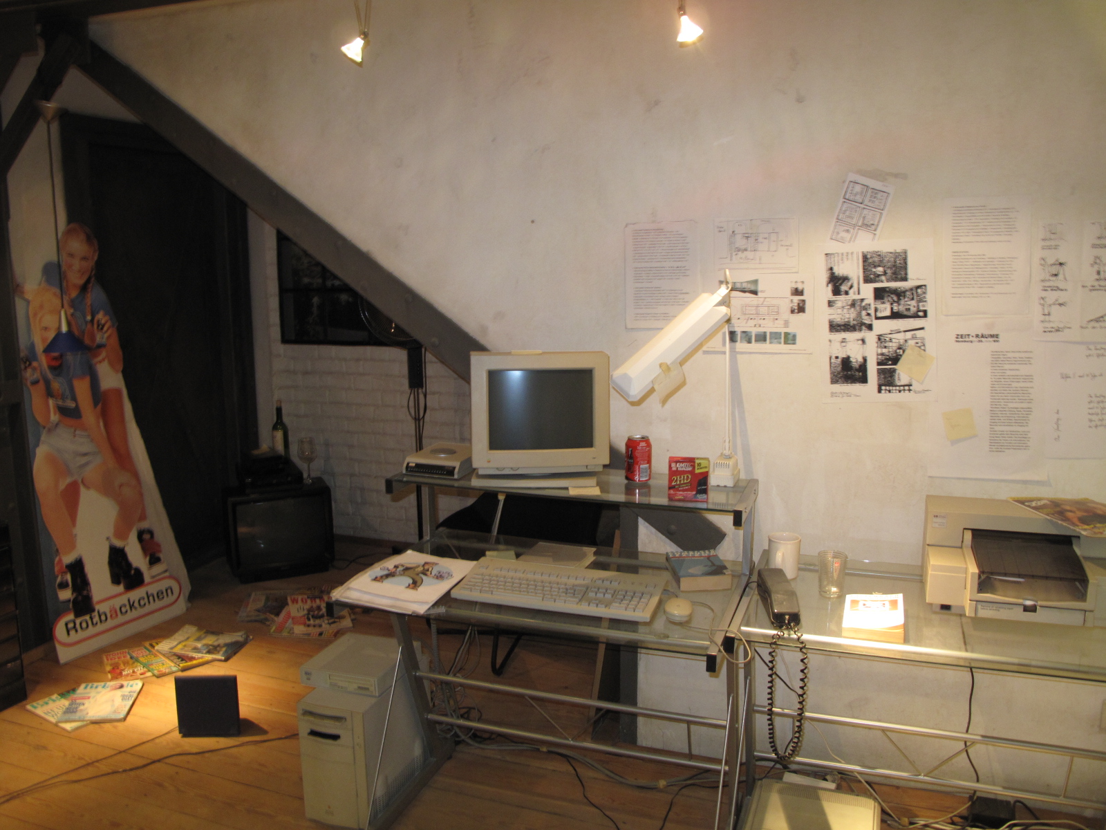 „Hier bist Du fast in Deiner Zeit angelangt. In diesem Raum soll ein Single, ein Alleinstehender, leben. Er arbeitet am Computer, oft bis tief in die Nacht. Dafür verdient er viel Geld. Seine Wohnung ist in einer umgebauten Fabrikhalle mit Blick auf den Hafen. Die ist teuer. Weil niemand sonst da ist, kocht er nicht. Im Raum siehst du die Fertiggerichte, von der Tütensuppe bis zur Pizza. Aufgeräumt hat er auch nicht. Für wen auch?“