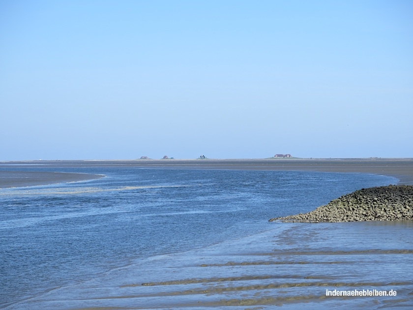 Direkt vor Husum liegt die Halbinsel Nordstrand. In Schleswig-Holstein nennt sich jede Ecke, die weiter als 50 cm ins Meer ragt, Halbinsel – aber Nordstrand ist wirklich eine, also fast vollständig von Wasser umgeben. Man erreicht sie über einen knapp 5 km langen Damm durch die Nordsee.