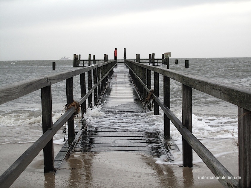 Alles klar. Wir ließens also wehen. Es wehte allerdings ganz schön. Der Sand fegte einem in die Ohren, Augen und durch jedes Kleidungsstück hindurch. So dass wir die 2,5 km lange Promenade von Wyk auf die Zukunft verschoben.