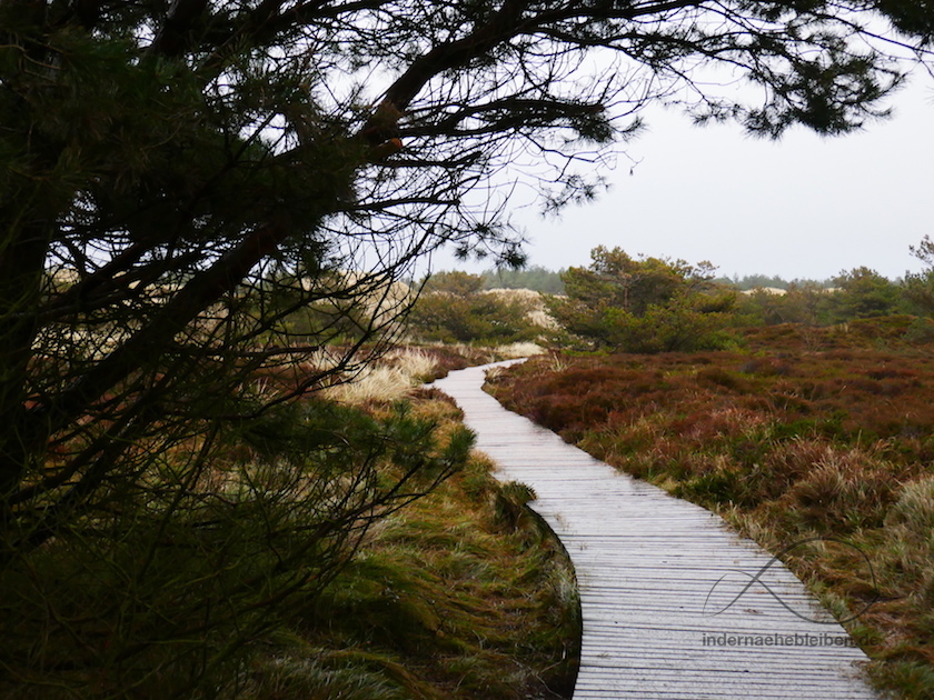 Nebel liegt hübsch mittig, so dass die Wanderungen zur Süd- oder Nordspitze etwa gleich lang sein können. Das Ganze ist aber größeren Variationen unterworfen – je nachdem ob man direkt am Strand spaziert, im Zick-Zack durch die Wahnsinndünen mäandert oder auf dem Waldweg bleibt. Bei beiden Rundtouren könnte man so zwischen 12 und 20 km auf dem Schrittzähler haben.