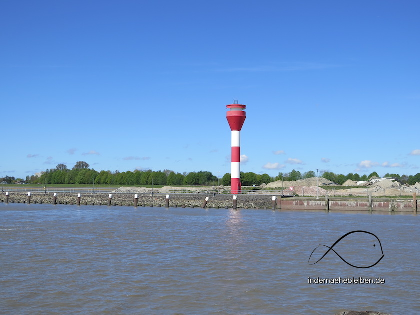 Nach vier Kilometern Deichruhe laeutet das Leuchtfeuer Mole IV den urbanen Teil dieser Wanderung ein