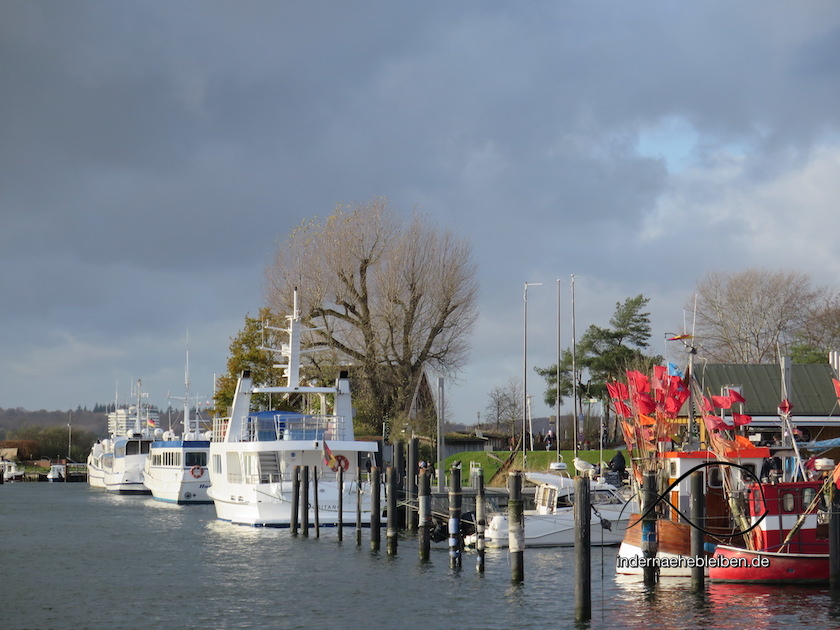 Selbst wer gern lang schläft, kann sich nach einem entspannten Sonntagsfrühstück noch auf die Socken machen. Wer um halb elf in Travemünde losstiefelt, erreicht den Hafen von Niendorf nach knapp sieben Kilometern um die Mittagszeit. Also eben dann, wenn man sich maximal auf ein Fischbrötchen freut. Und das gibts kaum irgendwo so frisch wie hier. (Nebenbei auch einen ganzen Euro günstiger als in Travemünde).