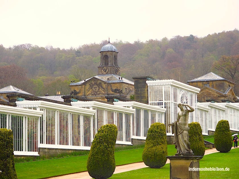 Selbst Leute, die überhaupt keine Gartenfreaks sind (Volko und ich) fühlen sich in der Anlage mit ihren Gewächshäusern, Barockgarten, Irrgarten, Tunnelsystem, Aboretum, romantischen Landschaftgärten, Kaskaden, Teichen, Springbrunnen, Skulpturen und weiteren seltsamen Sachen wie Alice im Wunderland. Und wenn es nicht durchgehend geregnet hätte, hätten wir ganz besimmt die Cheshire Cat getroffen und wären auf sicher noch Stunden geblieben.