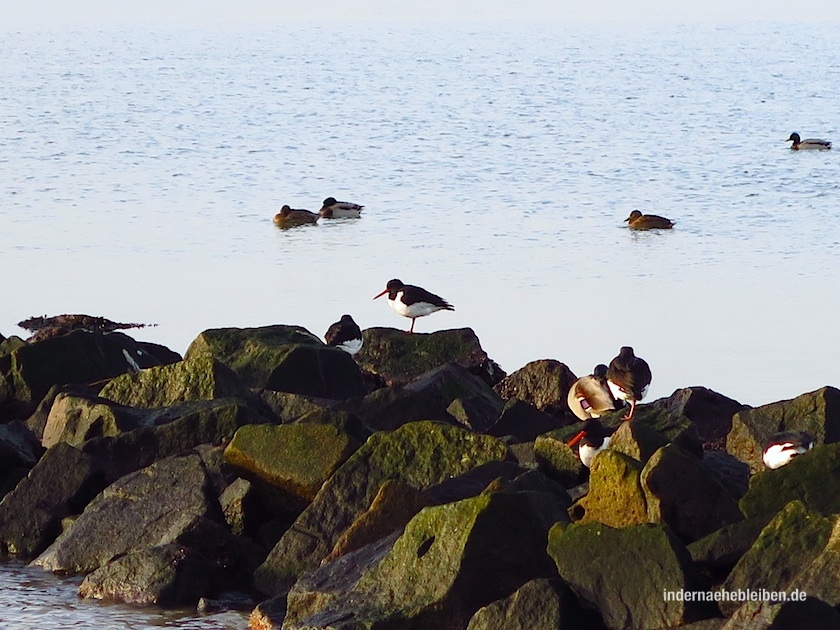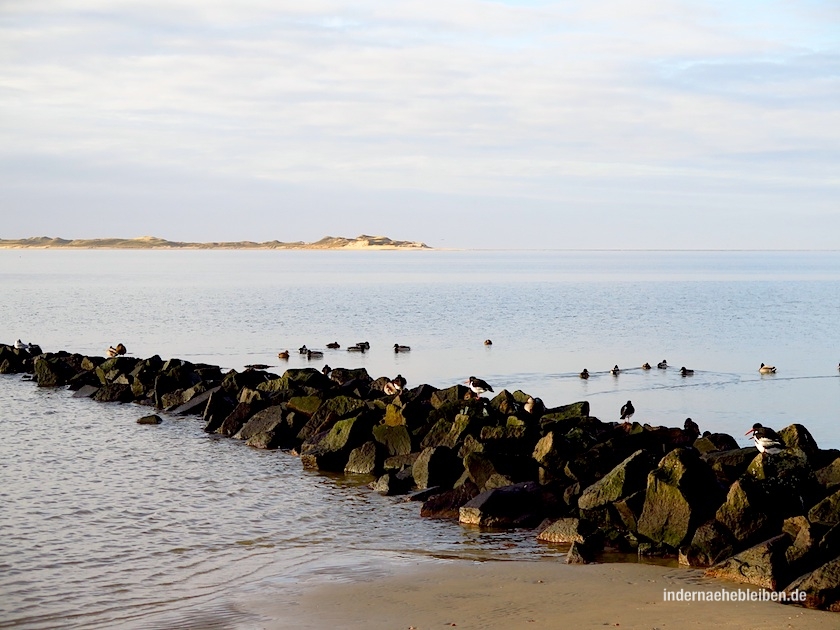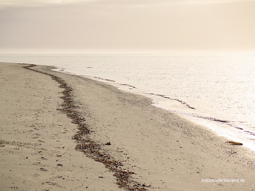 Also nix wie runter an den Strand. Der Morgen ist sowieso meine Lieblingszeit am Meer. Das Licht ist ganz zart, wenn Nordfriesland sich in Winterfarben kleidet. Das Wasser federgrau, seidenweich.