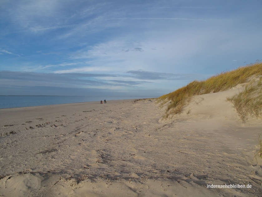 Linker Hand gibts nur Strand und Dünen und Himmel und Meer. Und rechter Hand Meer und Himmel und Deich und Wiesen.