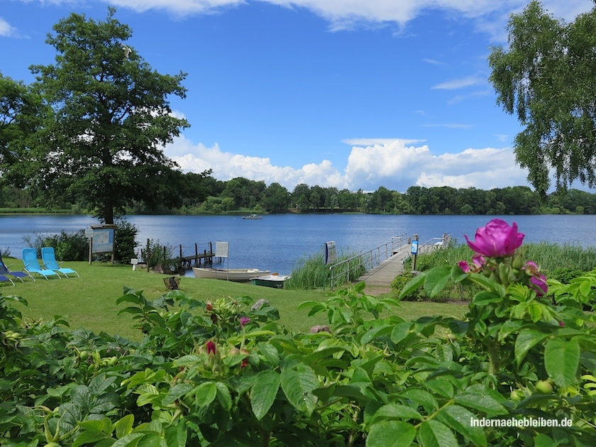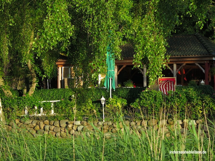 Im Garten warten Sonnenliegen, Strandkörbe, ein Pavillon für Regen oder Hitze, Bootsstege und sogar ein kleiner Sandstrand. Durch Rosenhecken kann man sich zum Diekseefischer Johannes Schmidt durchschlängeln.