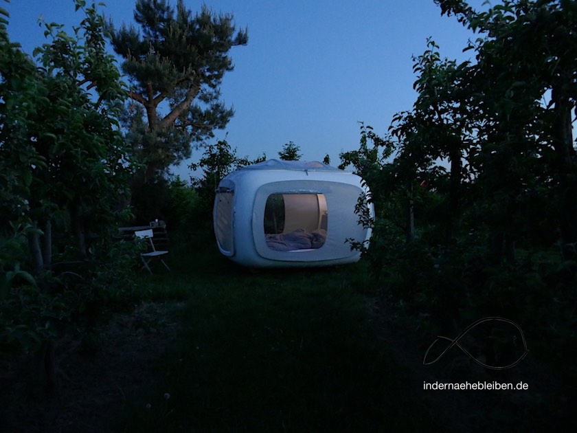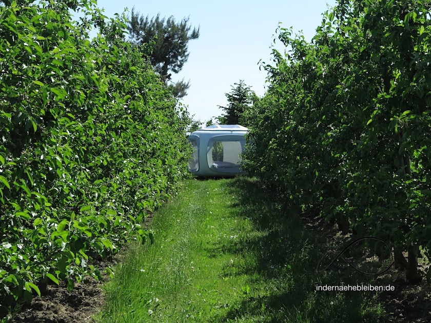 Wäre ich nicht als professionelle Testschläferin auf die Apfelplantage im Alten Land gekommen, dann am liebsten nach einem stressigen Bürotag. Denn es ist ja so unglaublich toll, wie anders sich ein ganz normaler Feierabend anfühlen kann. Das Beste habe ich allerdings verpasst, sagt V. Als nämlich die Sterne über dem Sleeperoo aufgingen, habe ich schon längst seelig geschlafen. Man nimmt seinen Job eben ernst.