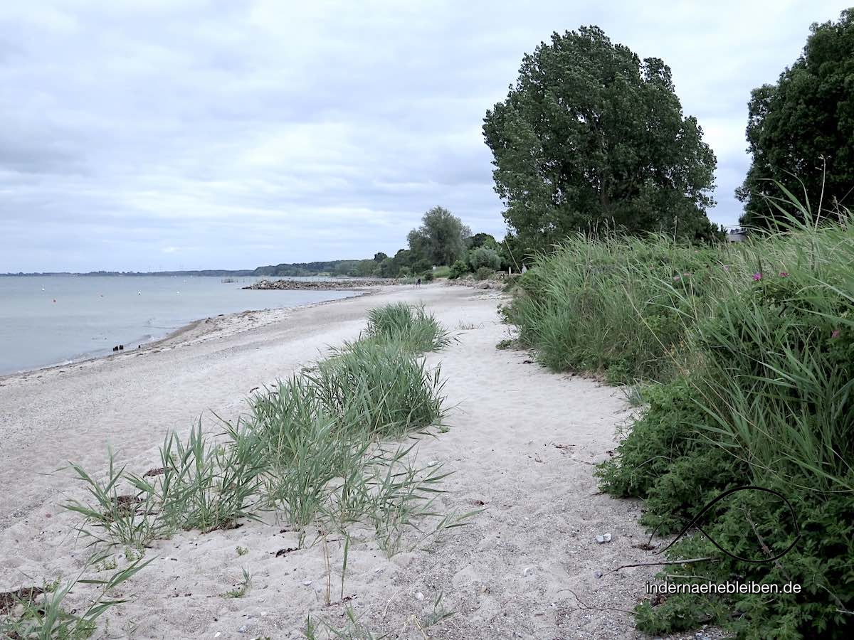 Dänischer Wohld heißt die Landschaft zwischen Eckernförde und Kiel. Hier finden sich (mal wieder zwischen den Campingplätzen) einige Strandabschnitte, die nicht mit dem Auto erreichbar sind bzw nicht über Parkplätze verfügen. Entspannt ist die Lage daher meist in der Aschauer Lagune oder auf den Kilometern zwischen Surendorf und Dänisch-Nienhof. Wo die bewaldete Düne von Noer den Strand schützt, kommen sogar nicht mal mehr Radfahrer weiter. Dort ist es – jenseits des Campingplatzes – am ruhigsten.
