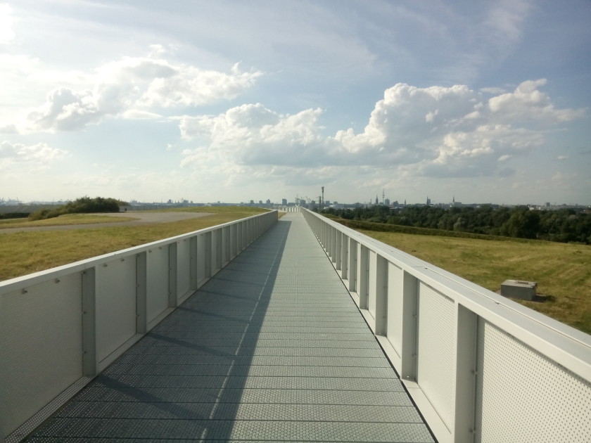 Georgswerder ist auch schon wieder so ein Stadtteil, den ich bisher nur als Autobahnausfahrt kannte. Damit stehe ich vielleicht nicht allein da. Oder am letzten Sonntag waren alle anderen bei den Harley Days. Jedenfalls konnte sich außer uns keiner für einen Ausflug auf den Müllberg (mit angeschlossenem Müllmuseum) begeistern. Was den Aufstieg auf den Energieberg Georgswerder um so surrealer machte.