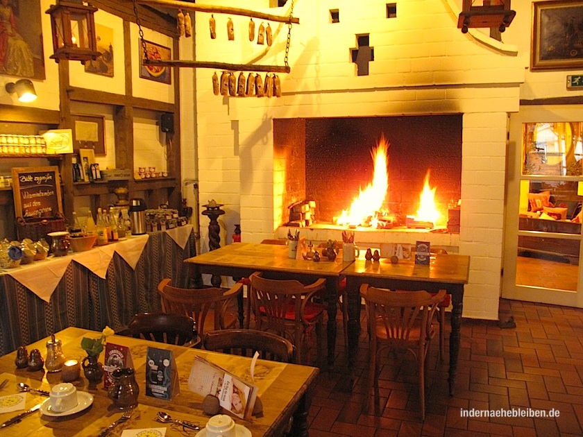 Zurück im Kartoffel-Hotel stellten wir allerdings die Vorzüge des Novembers fest: In dunklen Monaten sitzt es sich so schön am offenen Kamin. Besonders wenn die Köchin sich ganz der regionalen Landküche hingibt. Für Low-Carb-Anhänger muss das Restaurant des Kartoffel-Hotels die Hölle sein. Ich stells mir jedenfalls schwierig vor, wenn Tabletts mit Bratkartoffeln, Pellkartoffeln, handgedrehten Kroketten oder Puffern an der Nase vorbei serviert werden.