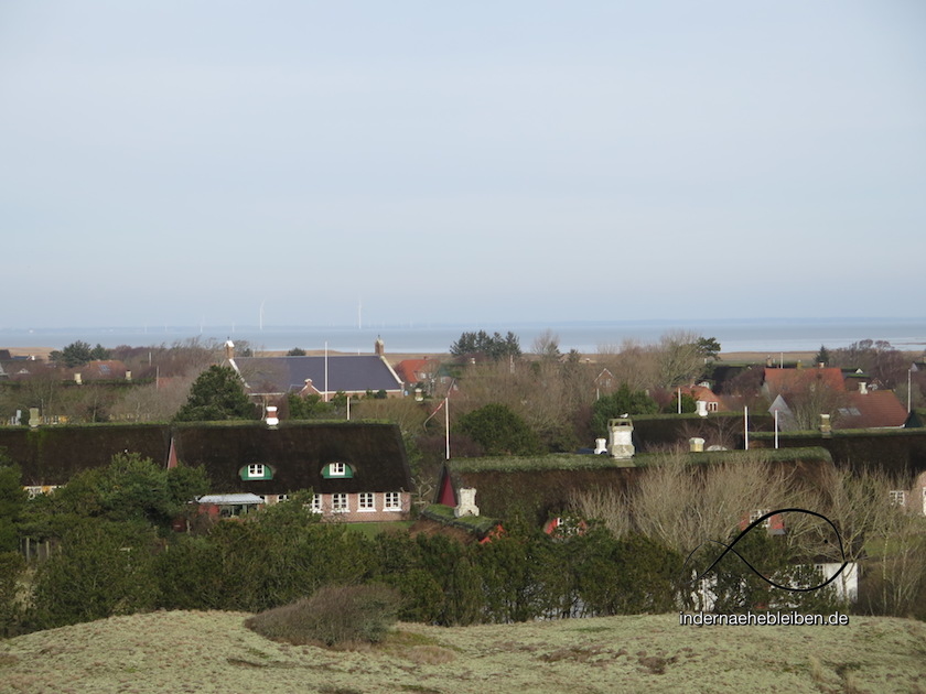 Sønderho ist mit 336 Einwohnern keine Riesengemeinde. Aber ausgestattet mit allem, was ein nordisches Paradies braucht. Im Sommer selbst für anspruchsvollste Gemüter, im Winter nur für Ruhesuchende. Denn das Leben kommt hier zwischen Silvester und Ostern fast komplett zum Erliegen. Wir schlängeln uns durch die engen, leeren Gassen und fahren 2 X an der Zufahrtsstraße zu unserem Ferienhaus vorüber. Weil wir uns einfach nicht vorstellen können, dass wir den Weg über den Deich wirklich nehmen dürfen. Doch so ist es. Und da sind wir erst mal platt.