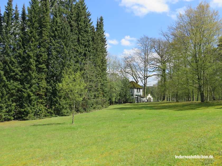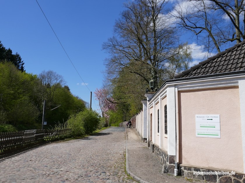 Ich hab mir die Ausstellungen mal für die Wintermonate notiert. Auch weil ich im wunderbaren Forsthaus Friedrichsruh ganz gern mal am prasselnden Kamin säße. Das Forsthaus wurde 1874 erbaut und ging 1876 in den Bismarck´schen Besitz über. Seit 1895 ist es ein Ausflugslokal; ach was sag ich: es ist der Inbegriff eines Ausflugslokals im Wald. Jetzt im Frühling sitzt man draußen im Garten. Und das ist wirklich traumschön.