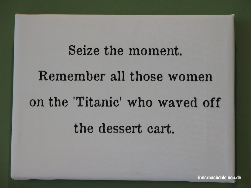 Im Foyer liegen Flyer mit Wanderwegen aus. Den „Eisvogelweg“ habe ich eingesteckt. Er führt zur Bismarckquelle und den gehen wir dann bei unserem nächsten Besuch. Vielleicht wenn uns im Hochsommer mal nach kühlem Waldschatten ist oder wenn die Bäume im Herbst sich färben und falls es in irgendeindem Winter tatsächlich einmal schneien sollte.