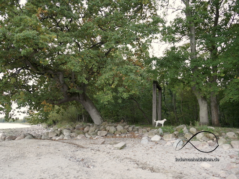 Wo der Weg in den Wald abnickt, sollte man unbedingt noch ein wenig weiter am Strand über Wackersteine balancieren. Bis zu der wunderbaren Eiche, meinem Lieblingsbaum. Er streckt sich ein bisschen schräg in die Welt. Und es ist unmöglich zu sagen, ob er im Frühling, Sommer oder Herbst am schönsten ist. Vielleicht ist auch der Winter seine beste Zeit. Ich werde das hoffentlich irgenwann einmal überprüfen können.