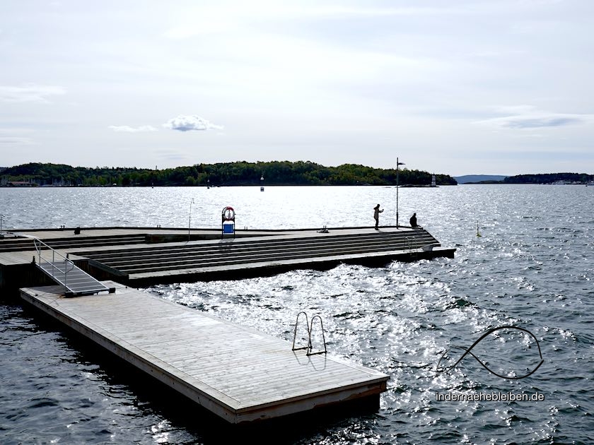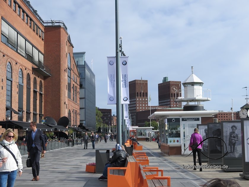 Auf dem insgesamt 9 km langen Wasserkanten-Weg ließe sich locker ein Wochenende verbringen. Aber auch für Mini-Kreuzfahrer, denen nur 4 Stunden Landgang zur Verfügung stehen, ist das ein empfehlenswerter Spaziergang. Man stolpert sowieso direkt vom Filipstad-Kai auf die Strecke. Wirft einen kurzen bedauernden Blick nach links zur Marina, um dann rechter Hand das neue Oslo zu erobern.