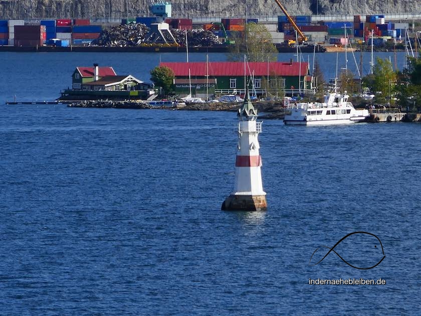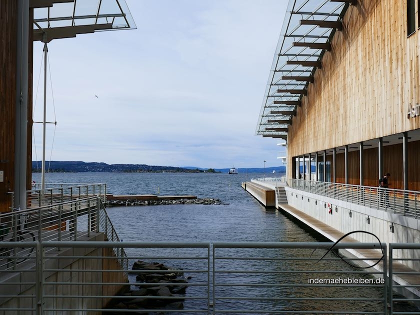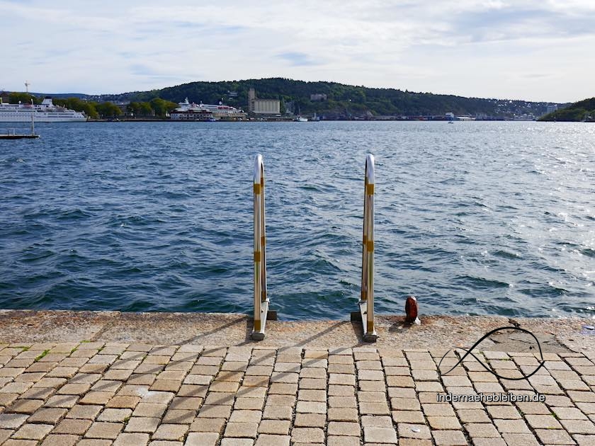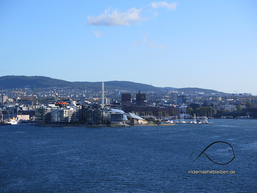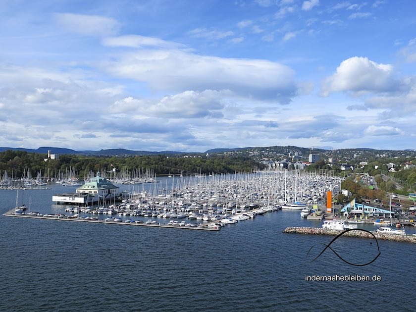 Und überhaupt der Oslofjord. Er ist der Hauptdarsteller und gewichtigste Grund, warum Oslo nicht auf einem Landgang zu erfassen ist. Blau und tief bildet er zwei Buchten, so dass die Silhouette der Stadt in etwa einem umgedrehten Schreibschrift-W gleicht.