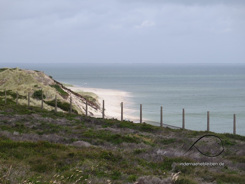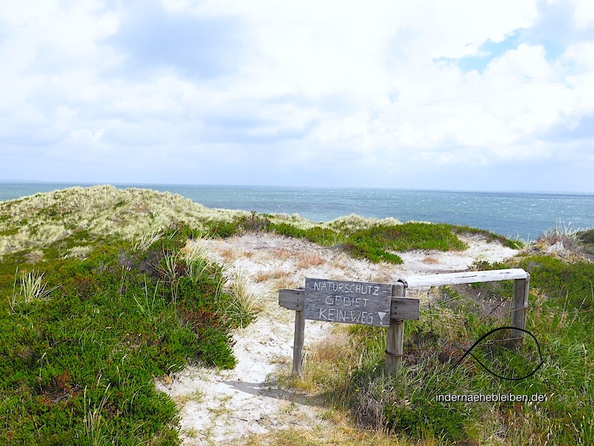Gestern hatten wir aber gar keine Angst vor nassen Füßen. Im Gegenteil – die Nordsee scheint aktuell wärmer als die Luft zu sein. Das ist ja immer herrlich zum Spazieren am Wellenrand. Doch der Sand schoß uns am Weststrand um die Ohren und in die Augen. Weitergehen vollkommen unmöglich. Da in den Dünen der Hörnum Odde strengstens Betretungsverbot herrscht, der Landweg also versperrt ist, mussten wir den Rückzug antreten.