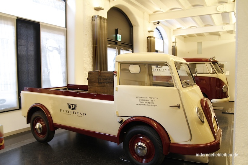 So was weiß eine Frau übrigens manchmal auch. Jedenfalls Carolin Peiseler vom Automuseum PROTOTYP. Sie hat uns in das Haus in der Hafencity eingeladen. Wir dürfen für das Stadtpark-Revival (ein Autorennen) recherieren. Dass Frauen ihren Männern zuliebe ins Auomuseum kommen, kennt sie schon.