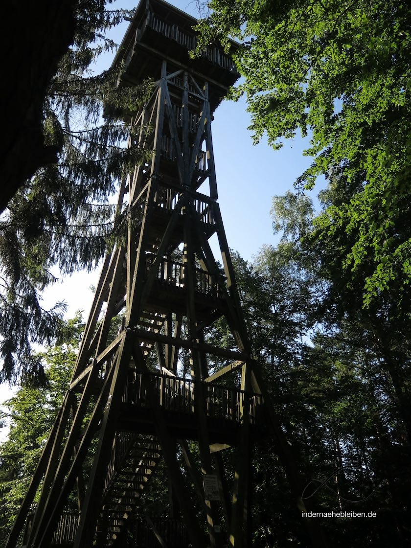 Bei klarer Sicht, so las ich im Netz, soll man bis Hamburg oder Lübeck gucken können. Ich weiß nicht, ob das stimmt. Ich sah nur Wald und ganz, ganz, ganz in der Ferne ein paar Hochhäuser. Keine Ahnung, ob das schon eine Hansestadt war oder ich der Falschaussage einer künstlichen Intelligenz aufgesessen bin.