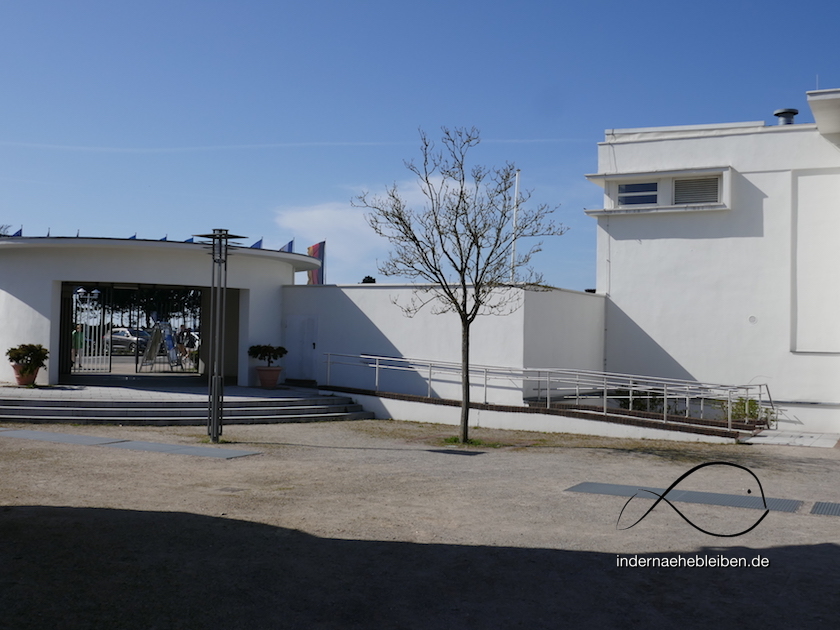 Ines ist übrigens in der Gegend geboren, kennt sich also aus – weswegen wir gleich auch noch einem ihrer Gastrotipps folgten, der uns voll überzeugte. Die Broiler-Bar im Hotel Neptun hätten wir ohne ihren Hinweis ganz sicher nicht aufgesucht. Es war aber wirklich extrem lecker; vor allem aber eine tolle, innerarchitektonische Überraschung. Wie man auf alten Fotografien erkennt, wurde die Einrichtung seit DDR-Zeiten nur minimal verändert – das aber so cool, dass sie voll zeitgeistig wirkt. Dolle Sache.
