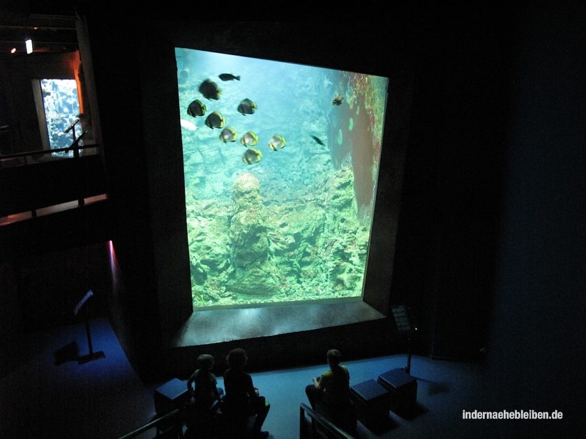 Zugegeben: Dass man als erstes in den großen Filmsaal soll, ist eigentlich nicht zu übersehen. Aber uns wurde vom (wirklich sehr, sehr netten) Personal ans Herz gelegt, besser mit dem Themenbereich Reise zu beginnen; „bevor die ganzen Schulklassen kommen“. Das war sicher nett gemeint. Aber meinem Empfinden nach nicht nötig. Soooo überlaufen ist das Klimahaus nicht.