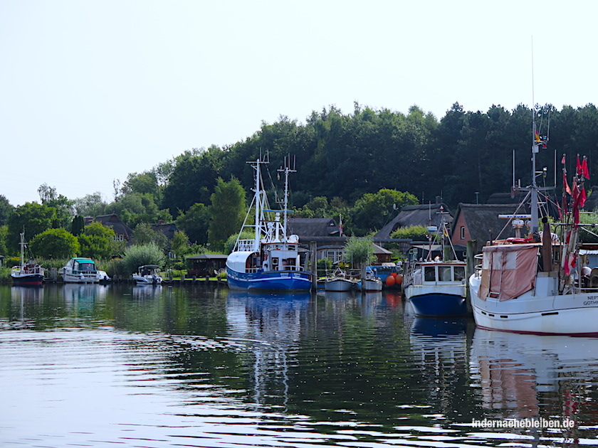 Die Buslinie 12 bringt Dich vom ZOB zu der idyllischen Siedlung im Stadtteil St. Gertrud. Gothmund verhält sich zu Lübeck ähnlich wie Övelgönne zu Hamburg. Es hat die gleiche Anordnung; mit einem Spazierweg zwischen Häusern und Gärten. Nur dass hier statt Kapitänshäusern Reetdachkaten stehen. Und während ich gar nicht weiß, ob in Övelgönne überhaupt noch Kapitäne leben, fahren die Gothmunder Fischer bis heute auf die Ostsee hinaus.