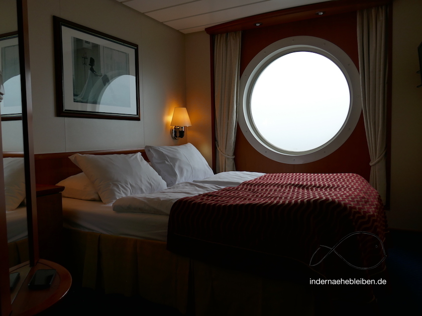 Vollkommene Privatheit in einem Verkehrsmittel, das man nicht selbst steuern muss! So etwas ist selten. Selbst der krasseste Misanthrop könnte in einer Schiffskabine zufrieden reisen. Auf dem Bett liegen und lesen, sich durchs TV-Programm klicken, dem Herrgott für das eigene Bad danken, ein mitgebrachtes Picknick im Kühlschrank verstauen oder einfach nur aufs Meer schauen (der Aufpreis für eine Außenkabine lohnt sich!).