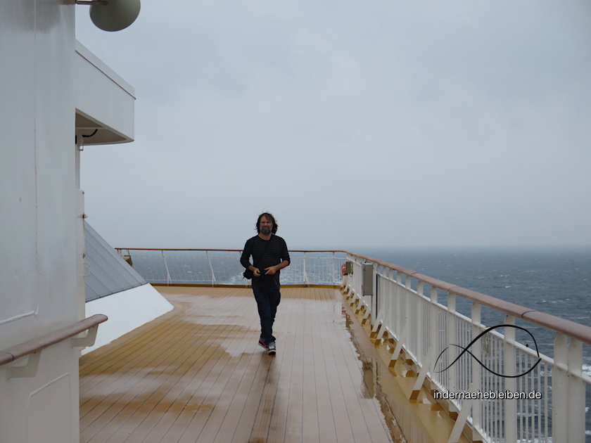 • Vielen Dank für den Link, Rainer. Auf Deinen Fotos kann man die Höhe des Schiffs so richtig schön erkennen. (Ich musste mich erst einmal daran gewöhnen, bevor ich entspannt an der Reling stehen konnte. Habs nicht so mit Höhe.)
