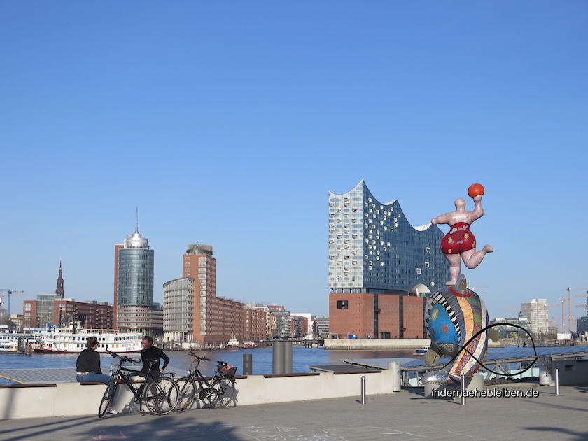 Da steht dieser Space-Elephant am Musical-Boulevard. Das klingt nach Broadway. Meint aber nur den Vorplatz zweier Theater im Behelfsbauten-Stil vis-à-vis der Landungsbrücken. Dort konzentrieren sich ziemlich viele Dinge, mit denen ich etwa so viel anfangen kann wie mit einem Osterfest in der Bude. Wenig nämlich.