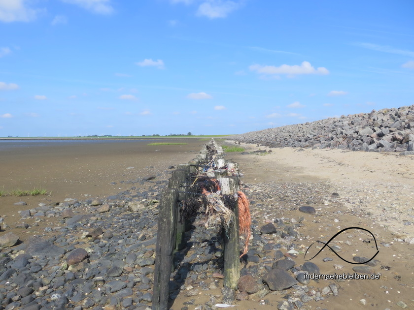 Für beide Badestellen gilt: Im Bereich hinterm Deich ist die Natur hier wild und üppig. Vorm Deich ist dann gar nichts mehr. Also wirklich gar nichts. Kein Baum. Kein Strauch. Kein Haus. Kilometerweit geht das so. Ob das im klassischen Sinne schön ist? Hand auf´s Herz: auf den ersten Blick nicht zwingend für jeden.