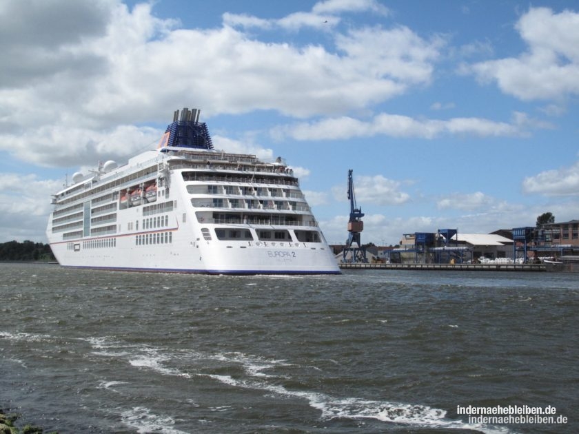 Ganz Insider warten wir gelassen die Europa 2 ab. Wir wissen, dass es gar nichts nützt, sich jetzt an der Fähre die Beine in den Bauch zu stehen. Die Schwebefähre schwebt eh erst wieder, wenn das Kreuzfahrtschiff vorbei ist – und auch alle Containerriesen und Tanker, die sich in ihrem Schlepptau gestaut haben. Von der Schiffsbegrüßungsanlage wehen Fetzen der Traumschiff-Melodie über den Kanal. Irgendwie, auf eine seltsame Art, ist Rendsburg echt abgefahren.