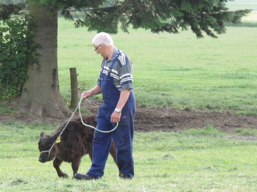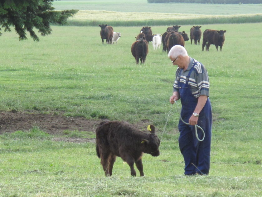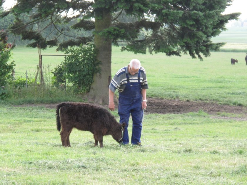 Bei Lindau verlässt die NOK-Expressroute erstmals den Kanal. Wir müssen den Berg hoch. Dort oben lebt ein kleiner Galloway Bulle, der von seiner Mutter abgelehnt wird. Führt der Bauer ihn morgens auf die Weide, rast die Herde davon. „Die müssen sich erst an ihn gewöhnen. Das wird schon“, beruhigt er uns Stadtmenschen.