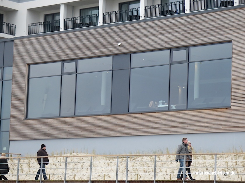 Das Wetter war genauso mies wie erwartet. Scharbeutz allerdings viel, viel, viel voller als erhofft. Also wirklich wahn-sin-nig voll. Brechend voll. Im Epi-Zentrum, beim neuen Bayside Hotel, fühlte ich mich wie auf dem Hamburger Dom. Auf eine gruselige Art war ich fasziniert. Aber ich hatte nicht das Bedürfnis, die Seebrücke zu betreten (was bei mir höchst selten vorkommt).