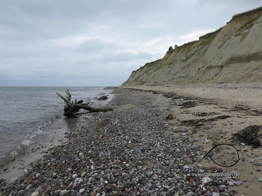 Dieses Mal wird auch aus meiner Richtung darauf hingewiesen, dass man sich an der Kliffkante in Lebensgefahr begibt. Wie ich hinterher in den Kieler Nachrichten lese, ist es wohl nicht direkt verboten dort oben zu spazieren. Aber auch nicht besonders empfehlenswert. Es kommt regelmäßig zu Abbrüchen und Unfällen. Der E1 führt jedenfalls seit einiger Zeit sicherheitshalber unten am Strand entlang.