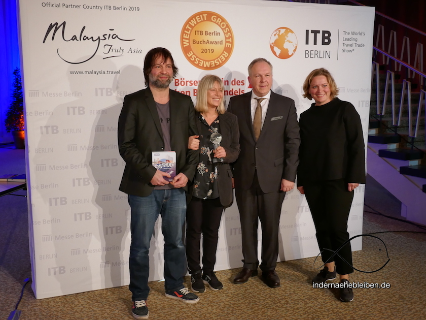 Und damit zur dritten sehr seltsamen Sache. Vorgestern wurde uns der ITB BuchAward 2019 verliehen. Genau genommen nicht „der“, sondern „ein(er)“ von immerhin 17. Die Welt ist ja groß genug für die unterschiedlichsten Themen und Publikationen und Kategorien. Darunter also unser Preis in der Kategorie Reisebuch – Deutsche Reisegbiete – für 52 kleine & große Eskapaden in und um Hamburg .