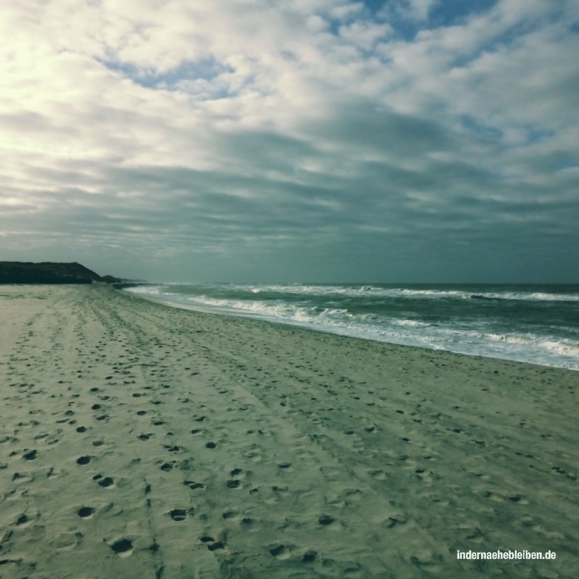 Von der Buhne 16 bis zur Ellenbogenspitze gibts besonders viel nichts. Einige unserer Lieblingsplätze haben wir noch nie im Sommer gesehen, daher kennen wir sie nur menschenleer. Wie zum Beispiel die Strandsauna, die richtig idyllisch über dem Weststrand thront. An sonnigen Tagen kann man hier prima picknicken; selbst im Dezember. (Heute aber nicht).