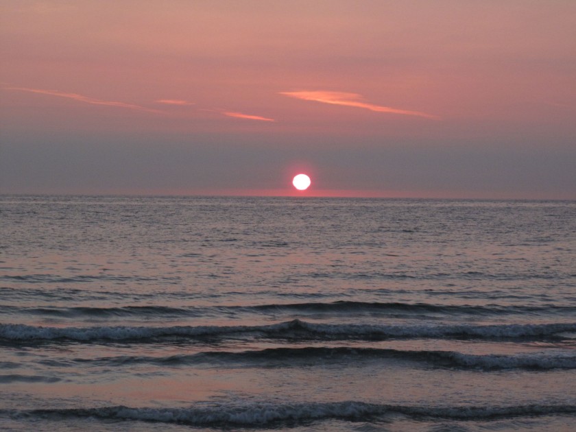 Fährt man 1 Stunde vor Sonnenaufgang (gestern um 04.09 Uhr) in St. Pauli los, sitzt man 5 Minuten bevor es beginnt am Strand. (Die 5 Minuten planen wir aus dramaturgischen Gründen ein. Es ist eben superkrass, wenn die Sonne sich über den Horizont schiebt).