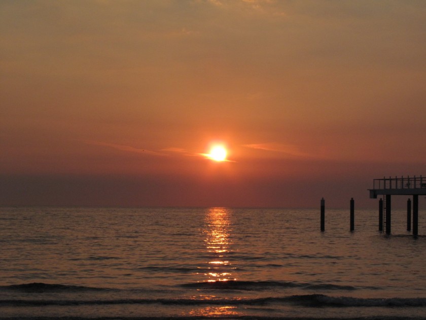 In den Sonnenaufgang zu schwimmen gehört zu unseren erklärten Hochsommer-Vergnügen. Das ist – Kitsch hin oder her – als würde man in kühles Gold tauchen. In der Regel gibt´s ja jährlich nur eine Handvoll richtig, richtig warmer Nächte in Norddeutschland, so dass man das Ganze auch gar nicht auf die lange Bank schieben sollte. Also los zum nächstgelegenen Beach – für Hamburger ist das Timmendorfer Strand.