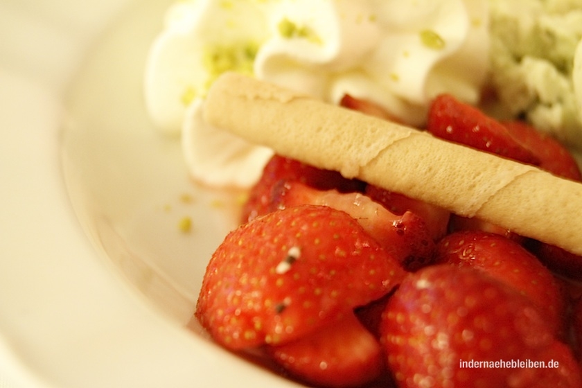 Das Sommer-Menue, bei dem die Anreise aus Hamburg schon inkludiert scheint, hat uns hervorragend geschmeckt. (Wie Vieles auf der Speisekarte, das wir ebenfalls getestet haben. Landluft macht ja sehr hungrig.)