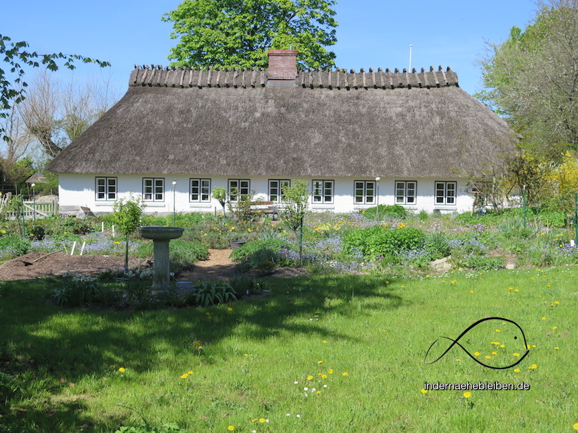 Aber wie ist es nur herrlich auf den versteckten Pfaden nach Osterholz. Hier haben verschiedene Vereine Obstbäume gepflanzt. Im Herbst darf man sich an den Früchten sattessen. Jetzt im Frühling blühen sie um die Wette mit den Gärten des Dörfchens hoch über der Steilküste. Ein Grundstück hat eine ganz besondere Ausstrahlung. Es ist die frühere Sommerresidenz des Brücke-Malers Erich Heckel.