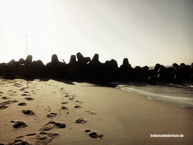 Wenn die Wellen wie heute beruhigend gluckern, ist die Wucht der Elemente kaum vorstellbar. Das hat was Meditatives. Ich gehe immer langsamer und bleibe irgendwann ganz stehen, um ins Pathetische zu geraten. Hier lässt sichs gut sinnieren über Ewigkeit, Vergänglichkeit, das große Ganze & meine Rolle darin.