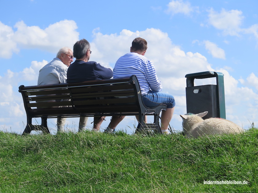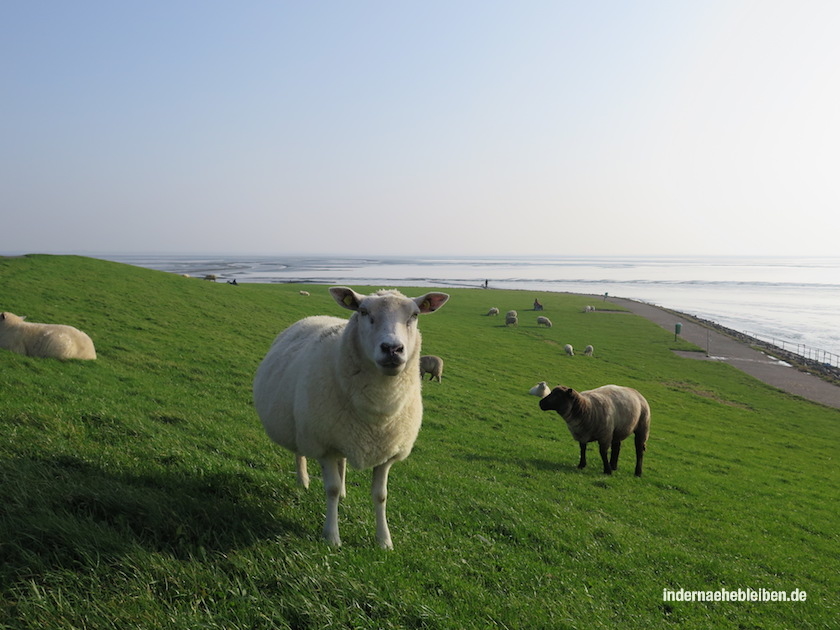 (6.) Schafe muss hingegen niemand fürchten. Als wir zu bloggen begannen, war ich mir dessen noch gar nicht sicher. Blieb sogar ein wenig auf der Hut, wenn einer der sanften Deichpfleger auf mich zuzockelte. Und ich wusste damals ja gar nicht, dass Schafe an 1000 Orte in der Nähe allerfriedlichst mit Menschen koexistieren.