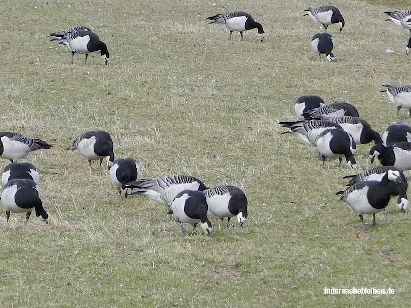 Wenn Ringel- und (7) Nonengänse in großen Schwärmen an den Küsten einfallen, ist Herbst. Sie gehören zu den wenigen Profiteuren intensiver Düngung in der Landwirtschaft. Darum nimmt die Population überall zu, wo sie Wasser und Felder finden.